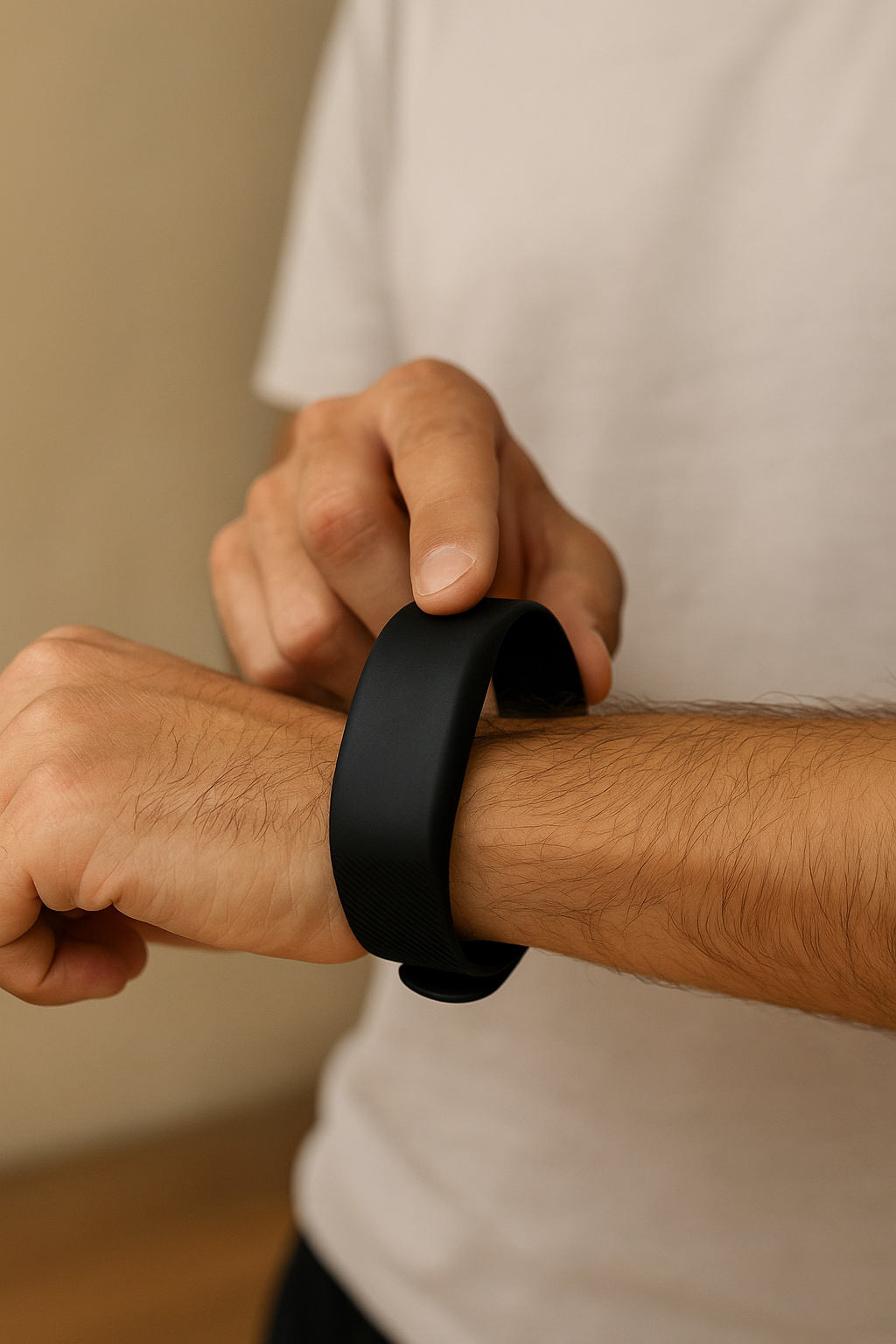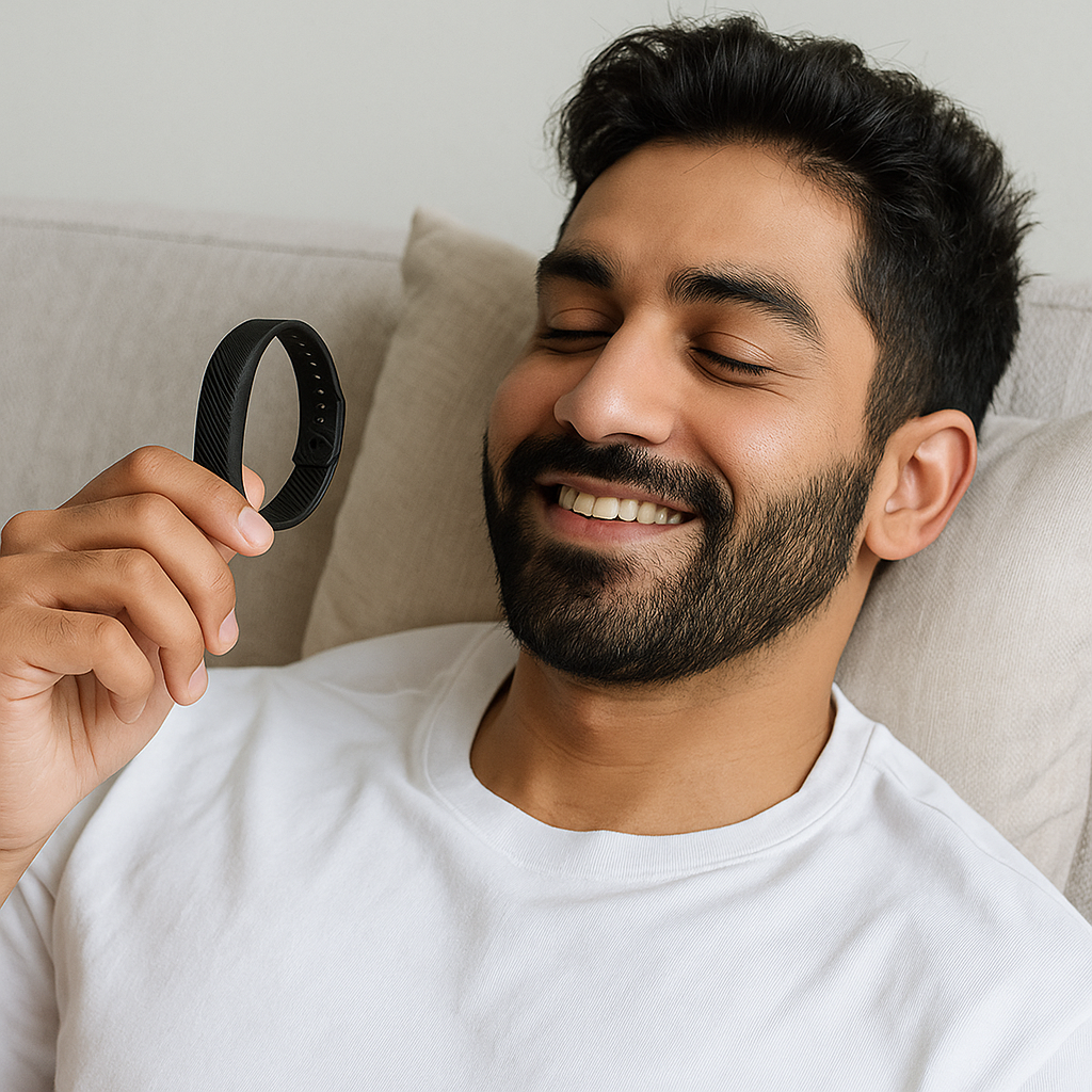 Non, Wak‑Up™ a été conçu pour être ultra simple, sans écran lumineux ni application. Vous programmez l’heure d’alarme directement sur le bracelet à l’aide des boutons latéraux. Moins de distractions, plus de sommeil.